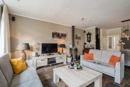 een sfeervolle woonkamer met aansluiting voor een houtkachel, een moderne keuken met alle gemakken en een heerlijke serre waar je het hele jaar door van de tuin kunt genieten.